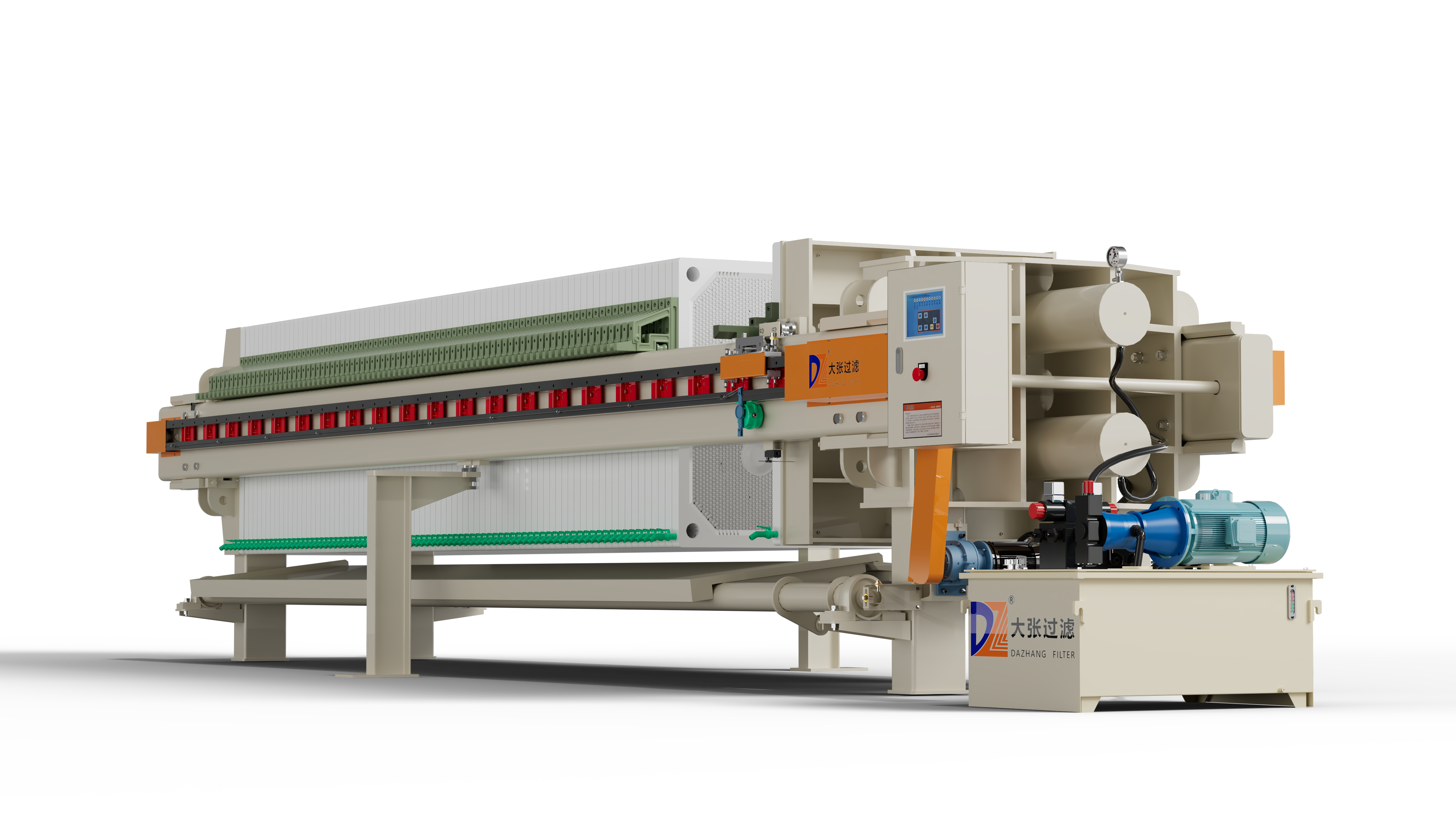 自動拉板廂式壓濾機,可以采用微電腦控制器、PLC、觸摸屏控制能對壓濾機進行各項操作(如濾板壓緊、集液板合并與開啟、松開濾板、拉開濾板,水沖洗等),并留有遠程控制接口,能遠程自動操作控制。